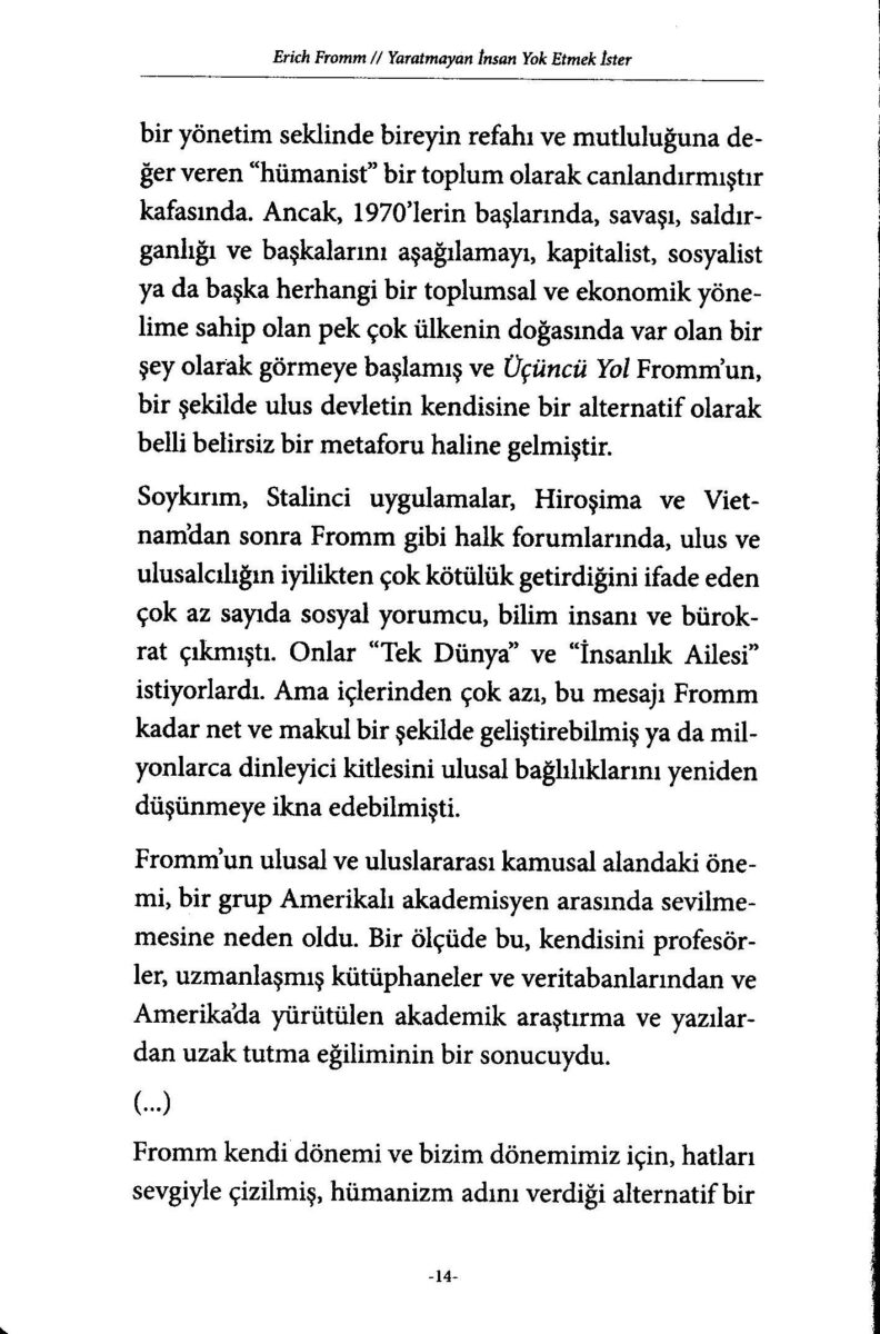 Erich Fromm -Yaratmayan İnsan Yok Etmek İster