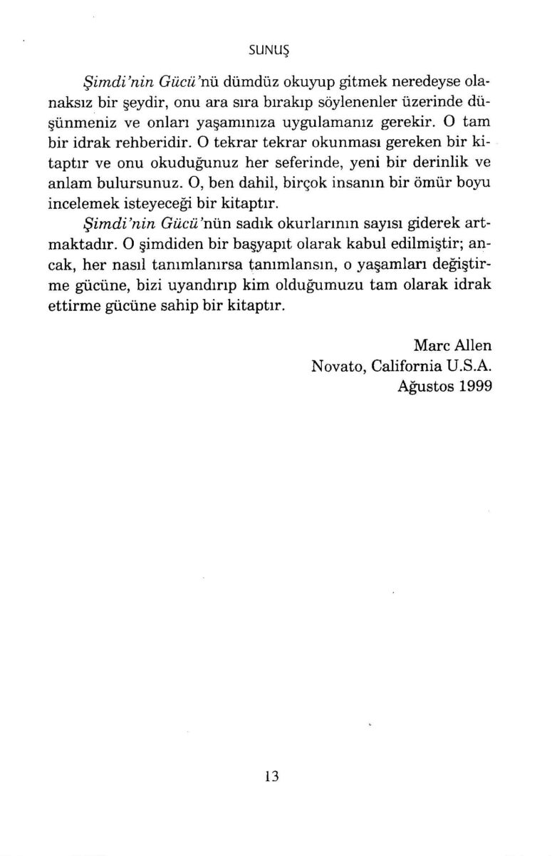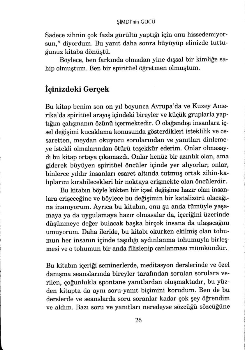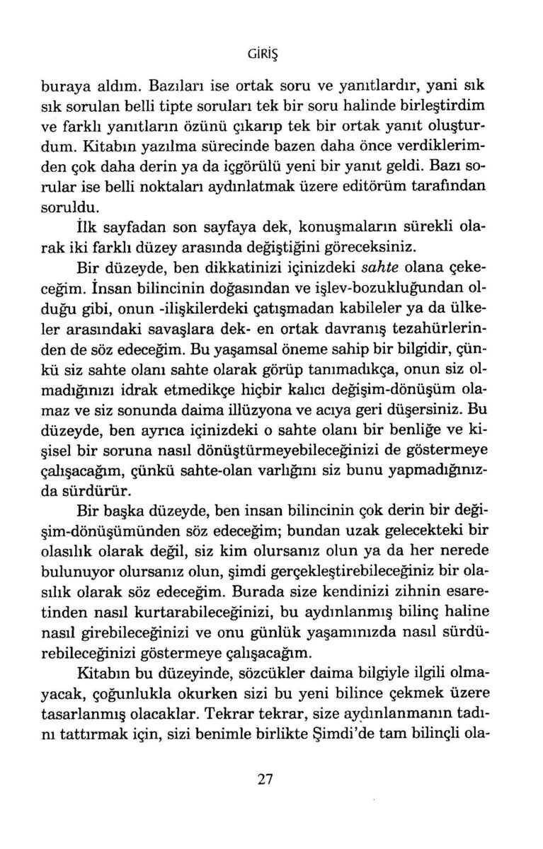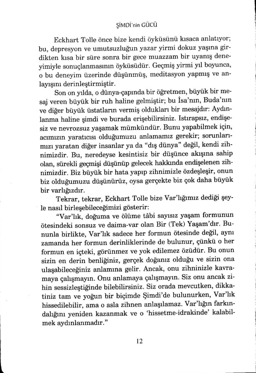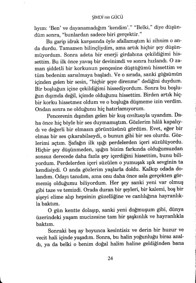 Eckhart Tolle/ Akaşa Yayınları, 8.Basım, 2009 / 248 Sayfa